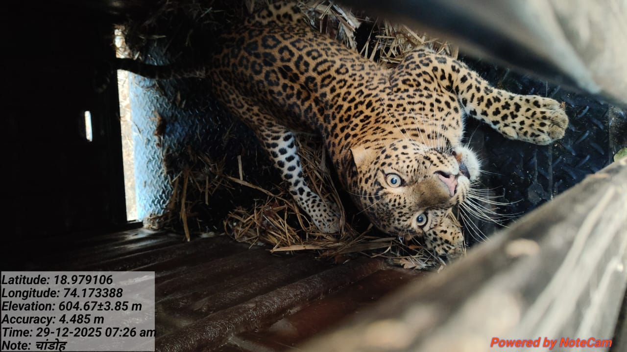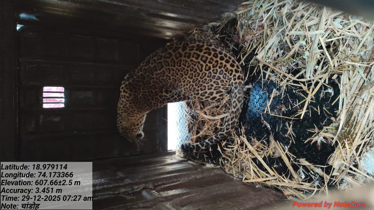 आज सकाळी { सोमवार दिनांक २९ डिसेंबर रोजी } फाकडे व चांडोह अश्या दोन ठिकाणी लावलेल्या पिंजऱ्यात दोन बिबटे जेरबंद झाले आहेत.